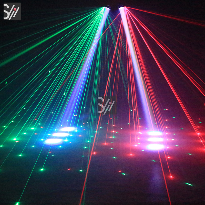 Lamp beads:6PCS 10W 4in1 cr ball,1PCS 100mW red laser,1PCS 100mW green laser,24PCS 5050 0.2WLED